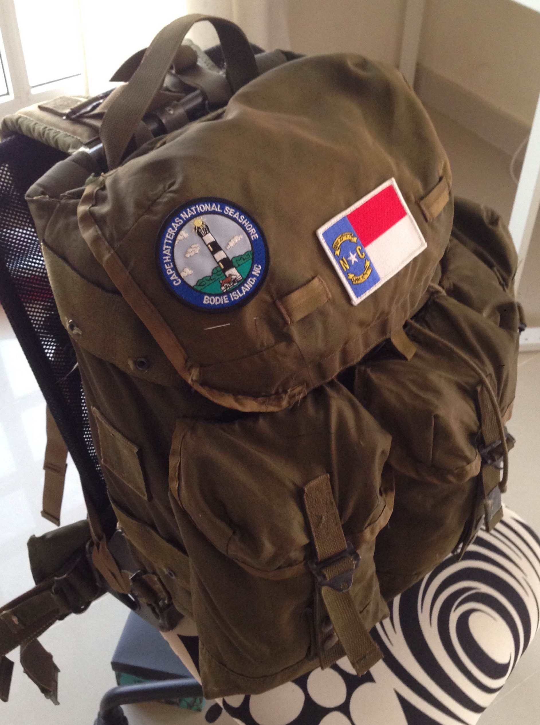 Last summer I bought an army surplus backpack from a family friend for $35. Since I’ve never been backpacking and have no immediate plans to do so, I figured I didn’t need an Official Backpacking Backpack. What I wanted instead was a backpack big enough to hold everything I would need for extended periods of travel, forcing me to pack light. This summer was the first time I got to test it.